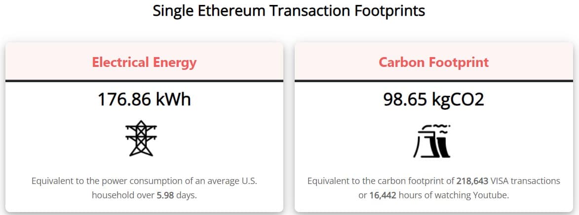 At the time of writing, Ethereum consumes about 176.86 kWh per block. Multiply this by about 6500 block creations, and the number quickly adds up.