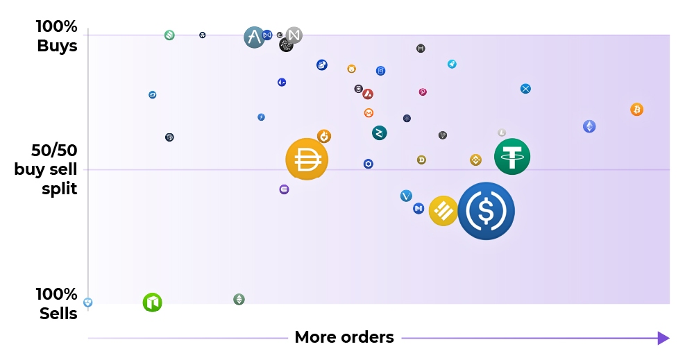 Easy Crypto customers have shown strong appetite for current crypto prices, with our Buy to Sell ratio (by order count) holding remarkably steady with Buys outnumbering Sells 4:1.