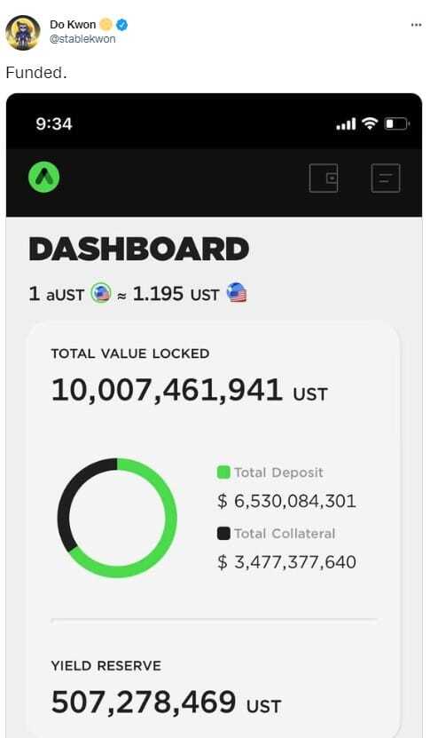 Anchor wasn’t making enough money to fulfil their lofty promises, but to no one’s surprise. Terra’s founder Do Kwon displayed publicly his attempt at calming down his followers, by “funding” the transparent Anchor Protocol reserve.