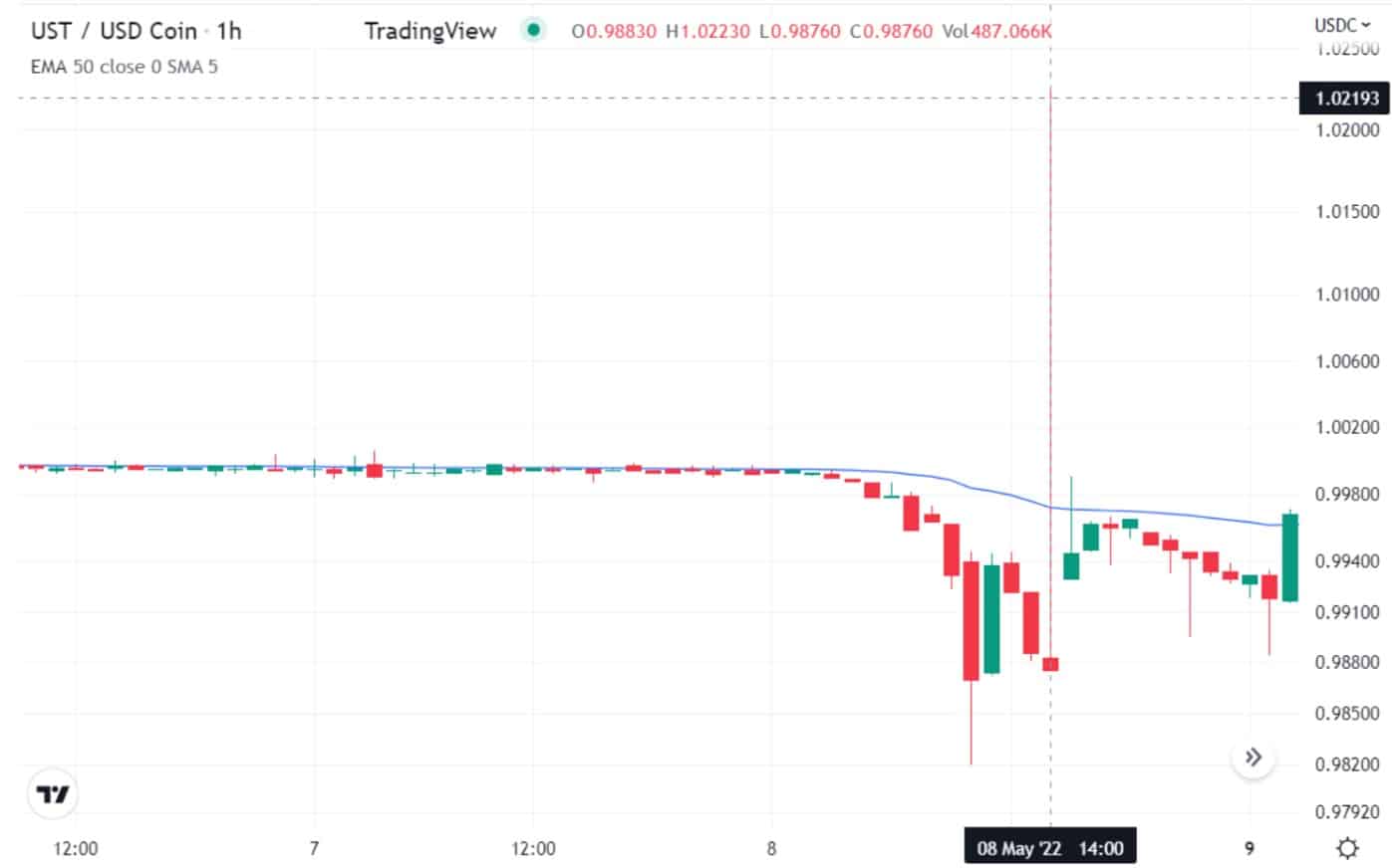 The UST’s de-peg lasted 10 hours before three unidentified wallets swapped a combined $480 million USDT for UST in a span of three days. This was seen as an effort to restore the depeg.