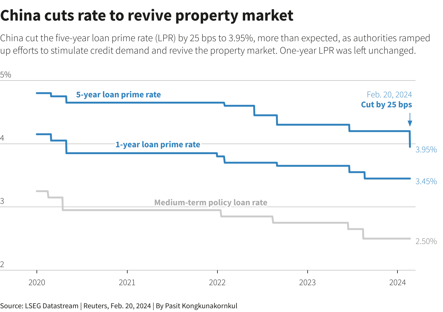 In response the PBOC slashed mortgage reference rates by 25bps. This is the largest ever reduction in the reference rate.