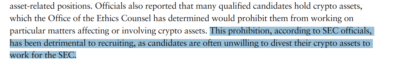 The SEC is struggling to recruit crypto experts because a job requirement is you have to sell your crypto.