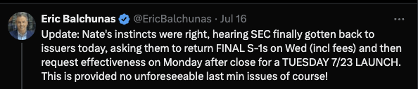 ETF analysts were predicting that the ETH EFTs are going live on the 23 July US time. We literally only got confirmation that they would go live yesterday.