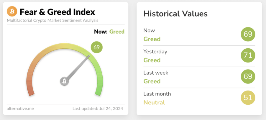 A comparatively stable week in market sentiment means we remain firmly in greed territory.