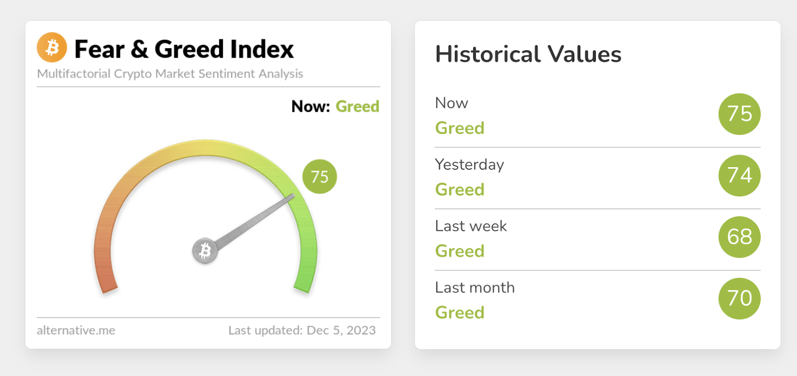 The crypto market sentiment has shaken last week’s withdrawal and is the furthest in to greed territory we’ve seen in a while.