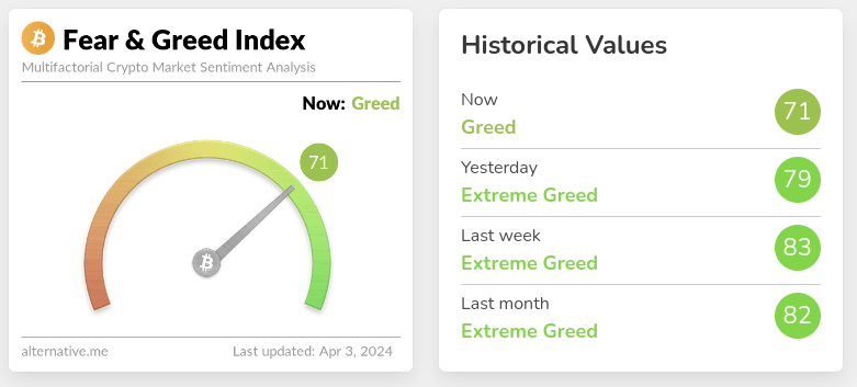 Despite the price volatility of the last few weeks, the crypto market sentiment remains in extreme greed.
