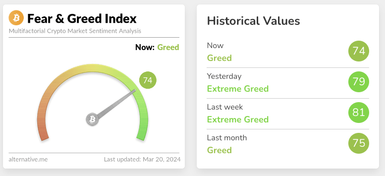Despite this week’s price volatility, the crypto market sentiment remains in extreme greed.