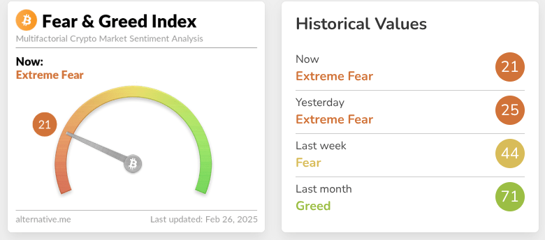 Market sentiment plunged on Trump tariff news yesterday: Extreme Fear