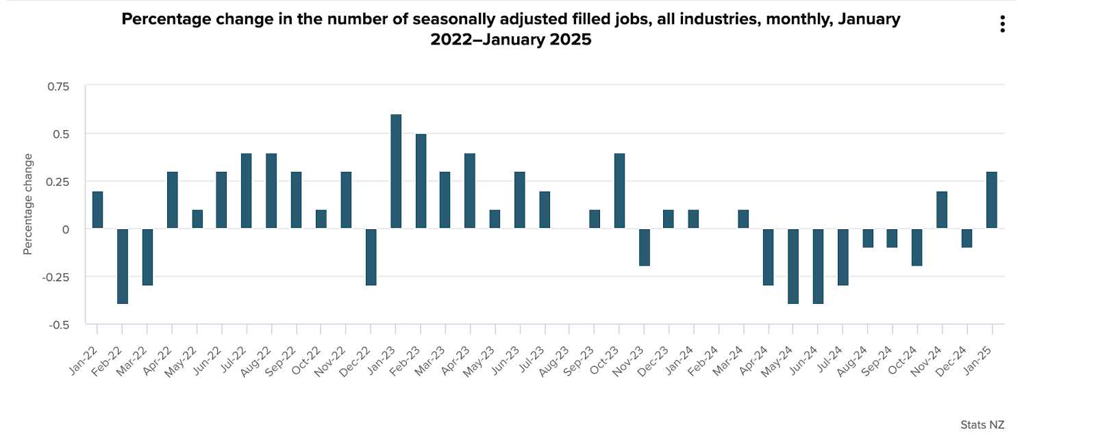 Stats NZ January employment indicators showed all industries up +0.3% compared to the prior month – which is a good leading indicator of a continued turnaround in the labour market.