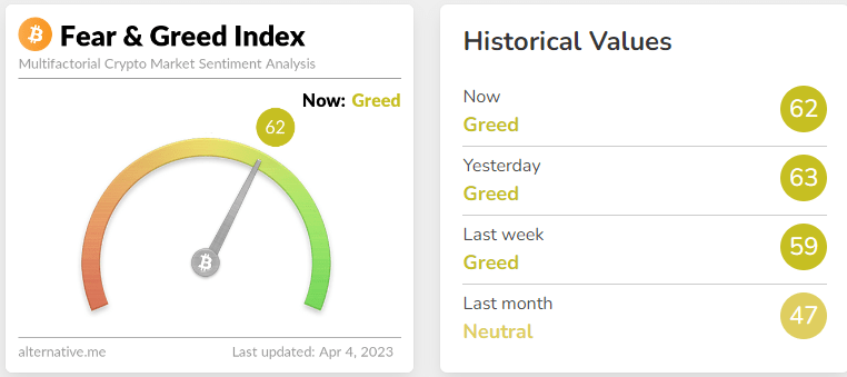 Another day, another revelation about SBF. This time he’s accused of bribing a Chinese official. The sentiment in the crypto market remains static as we hold steady for the 3rd week in a row in greed territory.