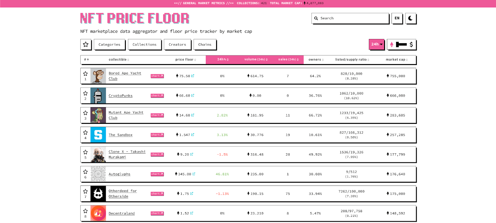 It gave a real-time view of the price changes in NFT projects. These changes are determined by people who buy and sell NFTs. Many people track the price changes using charts. You can find those charts on cryptoslam.io or nftpricefloor.com.