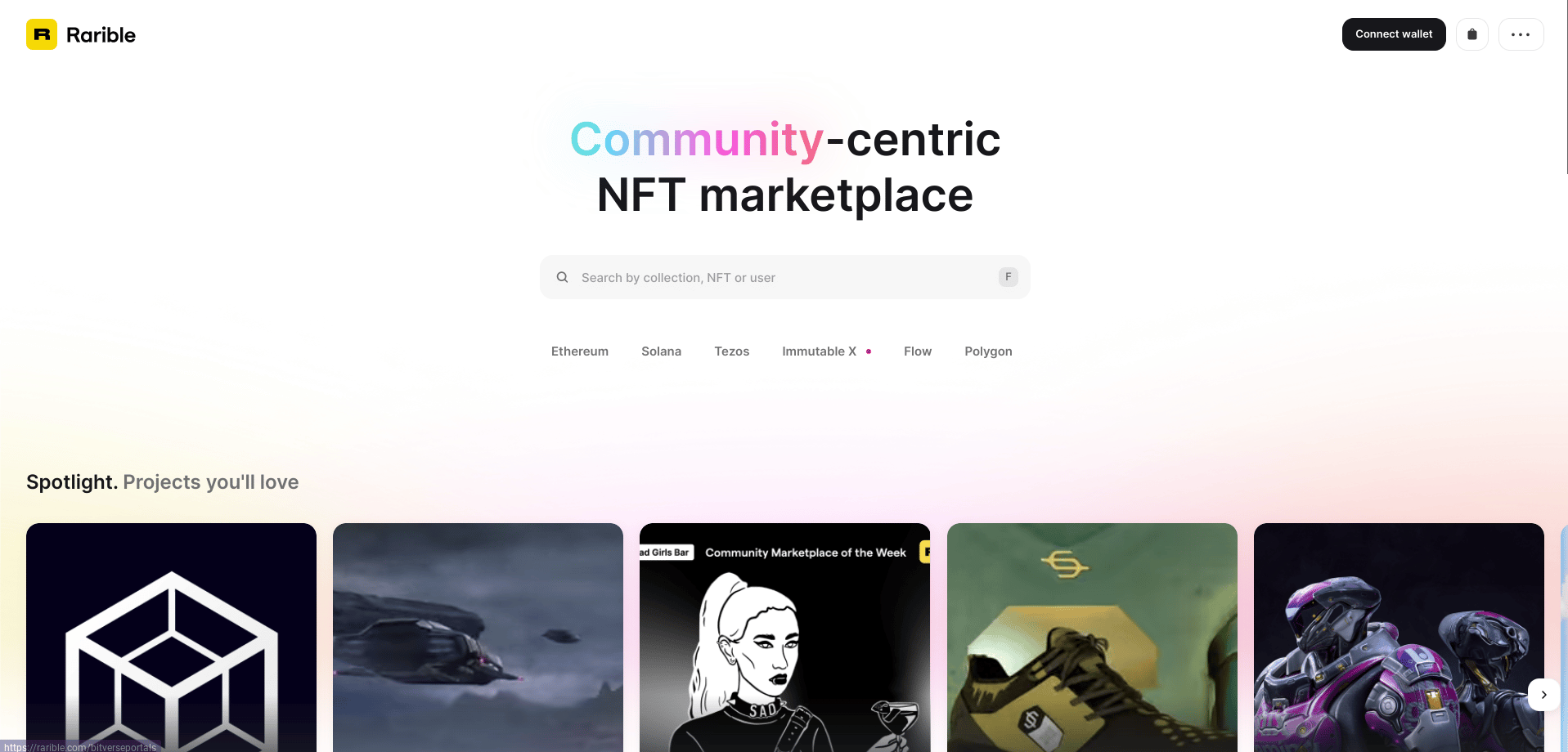 - Cryptocurrencies to transact: Rarible currently supports Ethereum (ETH), Tezos (XTZ), Flow (FLOW), Polygon (MATIC), and Solana (SOL).