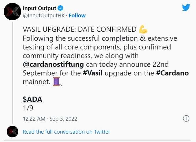 For a while, all seemed quiet from the Cardano developers. When September came, Input Output Hongkong was finally confident on the exact date of the Vasil Hard Fork on the main network.