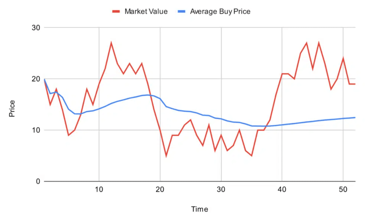 If you have $1000 to invest into crypto, you have two options. A) Invest the entire $1000 today, or B) Invest $100 per month for 10 weeks.